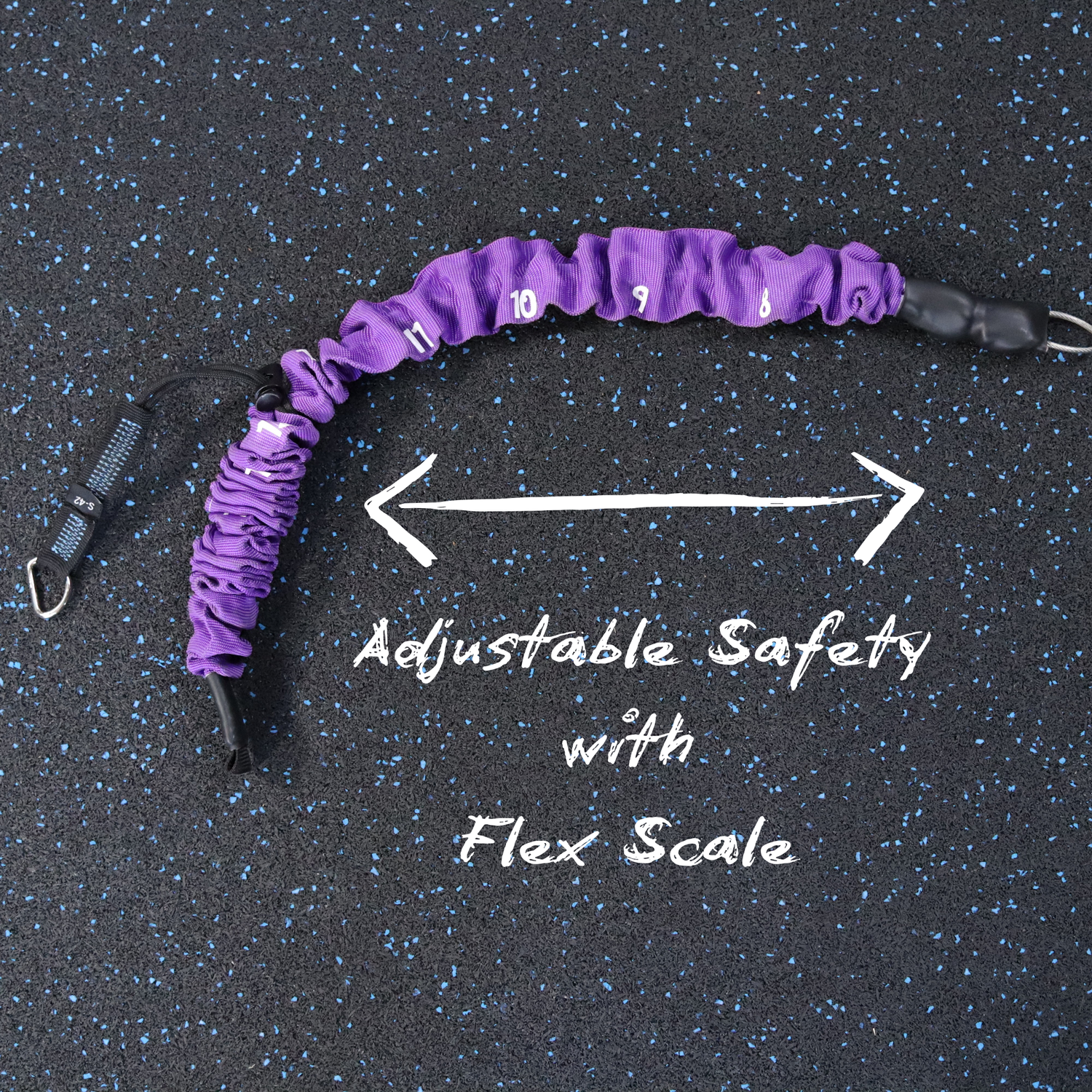 Using the Flex Scale on the safety strap precisely select the level of stretch that you need. Never have to worry about over stretching.